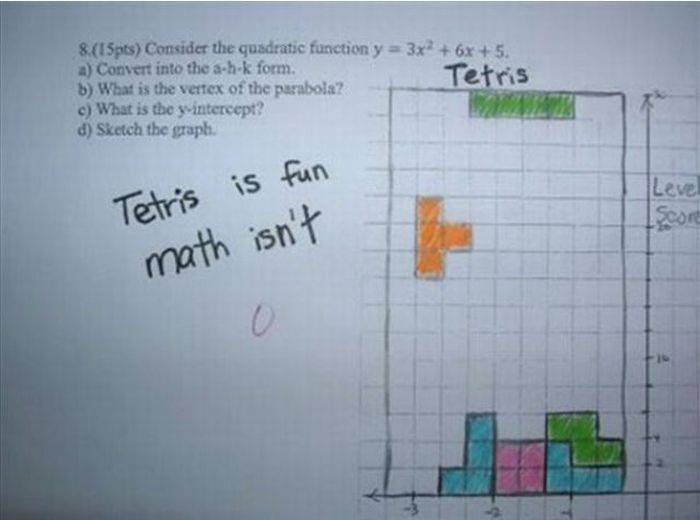 Ναι, είναι αλήθεια, το tetris έχει πλάκα ενώ τα μαθηματικά όχι. Αλλά γιατί να απογοητεύσεις τον μαθηματικό που έχει αφιερώσει εκεί όλη του τη ζωή; Φταίει αυτός να σε εκδικηθεί;